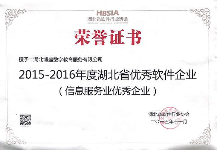 2015-2016年度湖北省优秀软件企业(信息服务业优秀企业)
