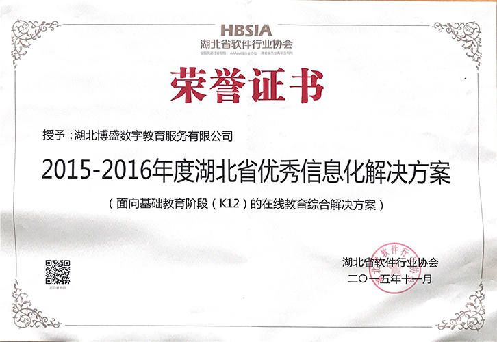 2015-2016年度湖北省优秀信息化解决方案(面向基础教育阶段k12的在线教育综合解决方案)