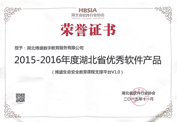 2015-2016年度湖北省优秀软件产品(博盛生命安全教育课程支撑平台V1.0)