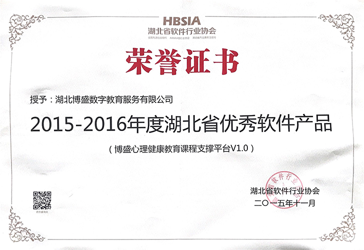 2015-2016年度湖北省优秀软件产品(博盛心理健康教育课程支撑平台v1.0)